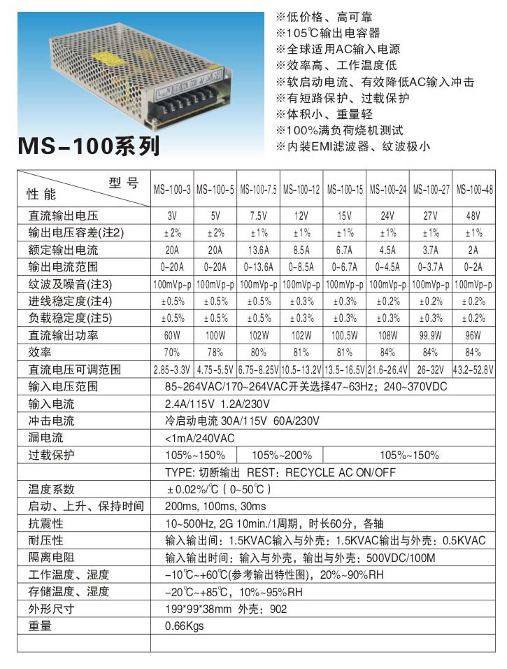 MS-100型AC/DC單組電壓輸出開關(guān)電源