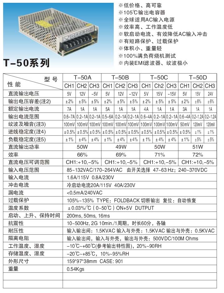 | 產(chǎn)品名稱: | T-50系列三組電壓輸出開(kāi)關(guān)電源 | |||||