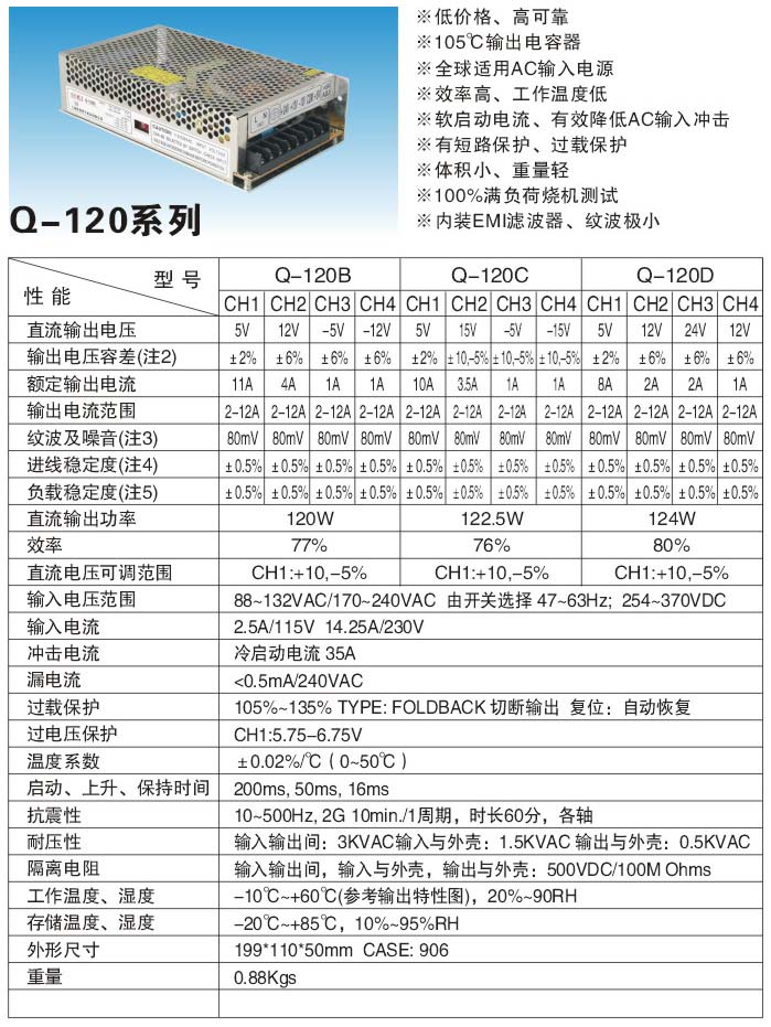 Q-120系列AC/DC四組電壓輸出開關(guān)電源