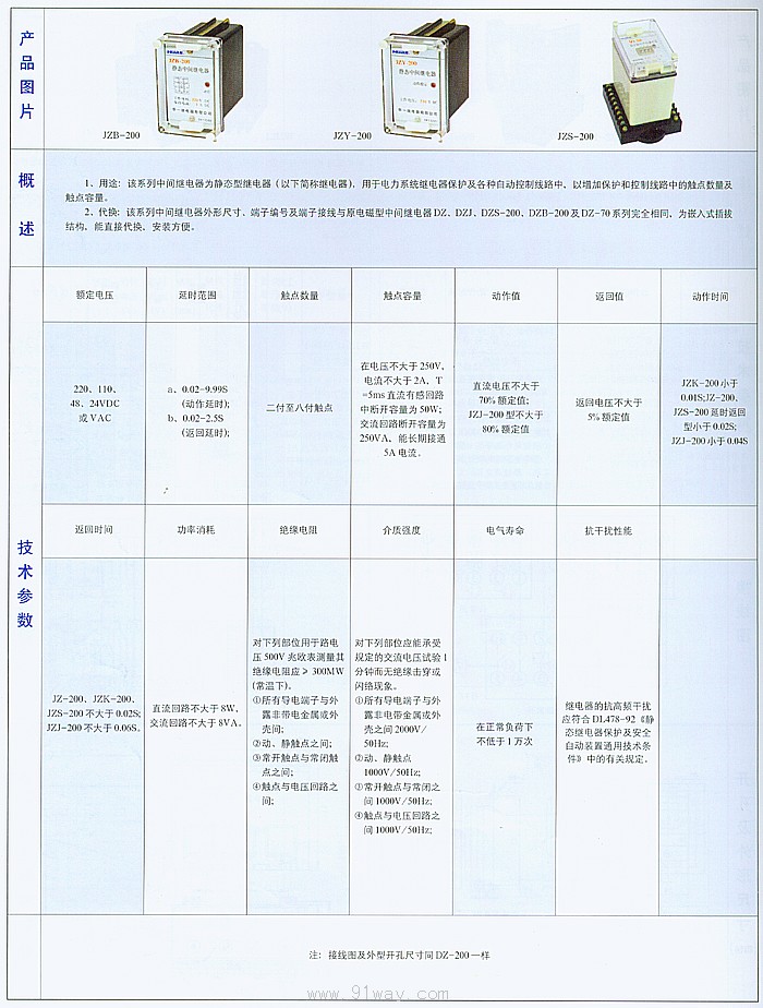 | 產品名稱: | JZB-200系列靜態型帶保持中間繼電器 | |||||