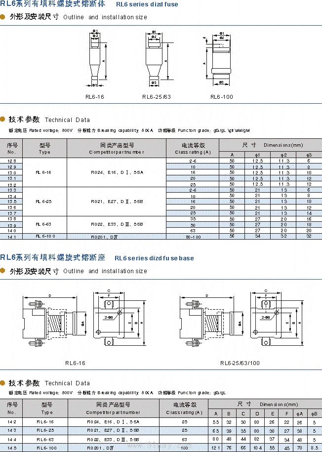 RL6系列有填料螺旋式熔斷器
