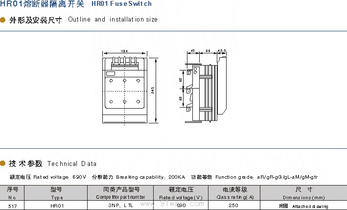 HR01熔斷器隔離開關