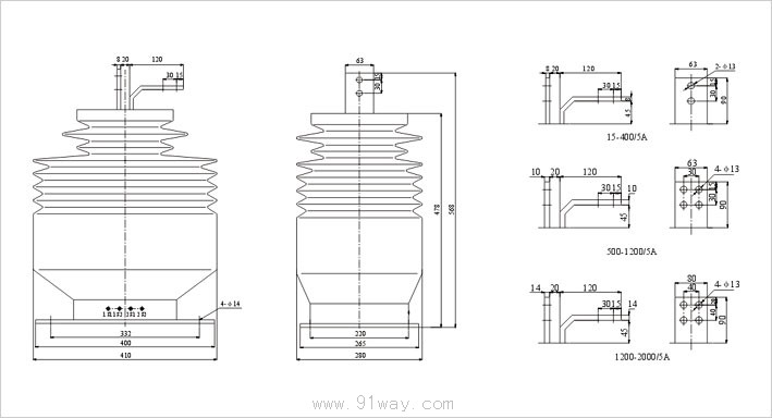 LZZB7-35系列支柱式電流互感器外形及安裝尺寸