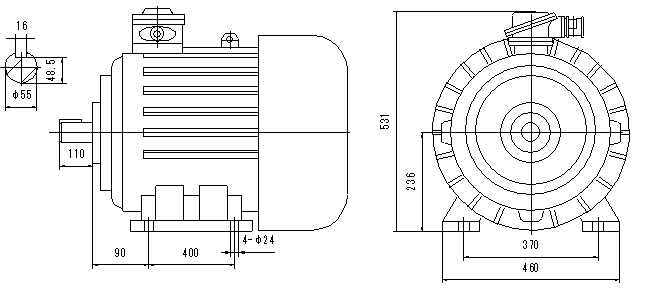 YR(J)系列繞線轉(zhuǎn)子三相異步電動機安裝尺寸及外型尺寸