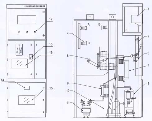 1、復合式過電壓保護器應連接在真空斷路器(或真空開關接觸器)與被保護設備(如:電動機或變壓器)之間,如右圖所示。