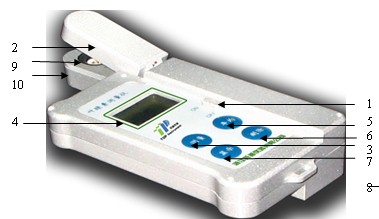 10、指模:按壓此處關(guān)閉測(cè)量頭。
