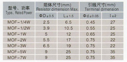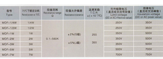 MOF/RY型金屬氧化膜電阻器(阻燃型)技術參數