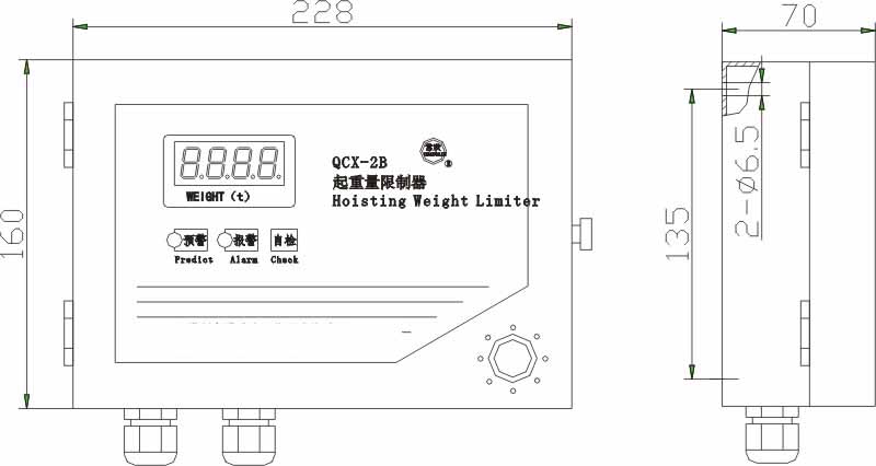 QCX-2B型起重機重量限制器儀表主要功能有:通過接入受力傳感器的信號,實時測量并同時顯示起吊的重量。當重量達到設定值時,具備聲光報警和輸出控制信號,切斷起升回路電源的功能。