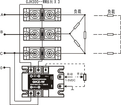 2、GKZ-W輸出可以控制一個固態(tài)繼電器,亦可以控制2個(串聯(lián))或3個(串聯(lián))固態(tài)繼電器。