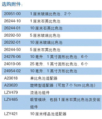 DR 5000 型紫外可見分光光度計有240 多個水質測試方法的應用程序(可測量參數請參考樣本中《哈希分光光度計及比色計測量參數列表》),該儀器可廣泛應用于工業、市政、環保、教育等領域的水質監測。使用哈希公司提供的粉枕、安瓿瓶、TNT測試管等不同包裝的預制試劑,可大大縮短樣品分析時間,同時提高了測試的準確性和實驗室分析人員的工作效率。DR 5000 型紫外可見分光光度計提供了適用于5種比色池的單比色池適配器、適用于多個比色池的旋轉型適配器,流通池模塊及吸管模塊,使分析方法更加靈活。