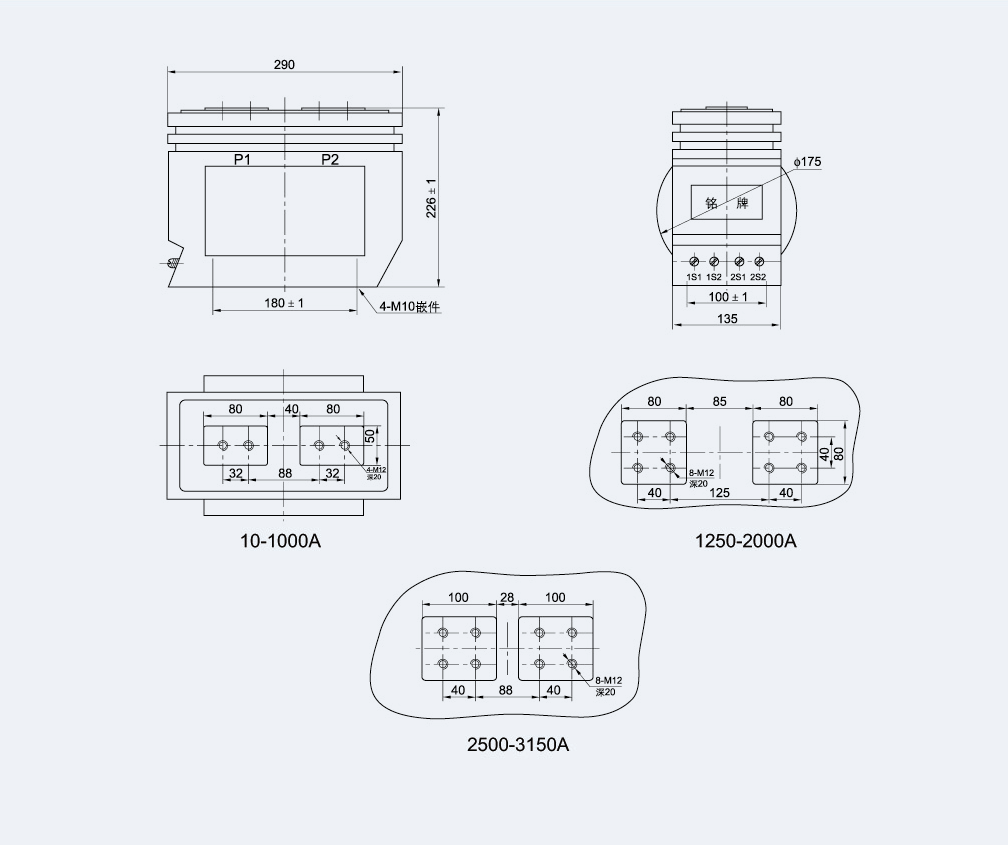 LZZBJ12-10B技術參數 LZZBJ12-10C技術參數 安裝尺寸LZZBJ12-10A、B、C系列電流互感器