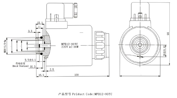 MFB12-YC系列交流本整型濕式閥用電磁鐵外形及安裝尺寸