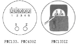PMC系列壓力變送器在出廠時已按照用戶要求調至所需量程,無需進行調試即可現場安裝,如果需要重新調節零點和測量范圍,則將變送器上蓋旋下,分別調試滑蓋下面的零點電位器(Z)和滿量程電位器(S),達到所需數值。