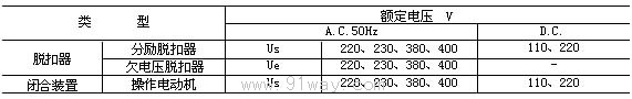 2. 斷路器脫扣器及操作電動機的額定電壓見下表表2