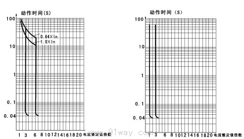 圖3 熱-電磁式過電流脫扣器保護特性曲線 圖4 電磁式過電流脫扣器保護特性曲線
