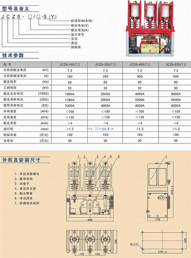 JCZ8-160-630/7.2投切電容真空接觸器