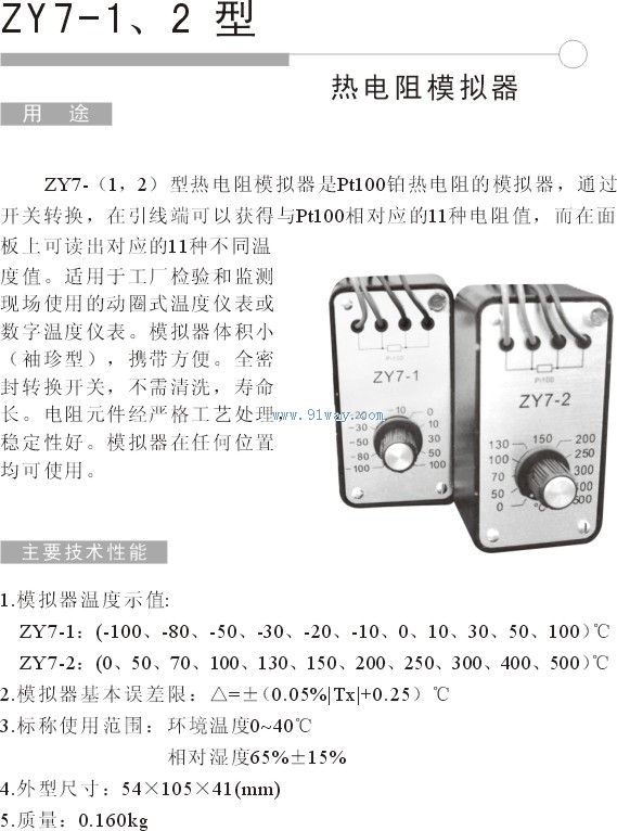 ZY7-1熱電阻模擬器模擬范圍:-100 0C~100 0C共11點(Pt100) 準確度: 0.05%