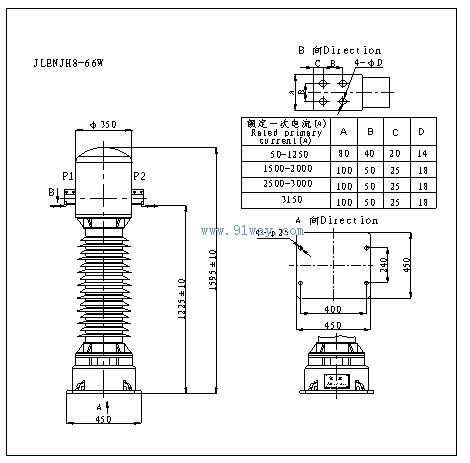 五、JLENJH8-66W型數字式光電組合互感器外形及安裝尺寸圖
