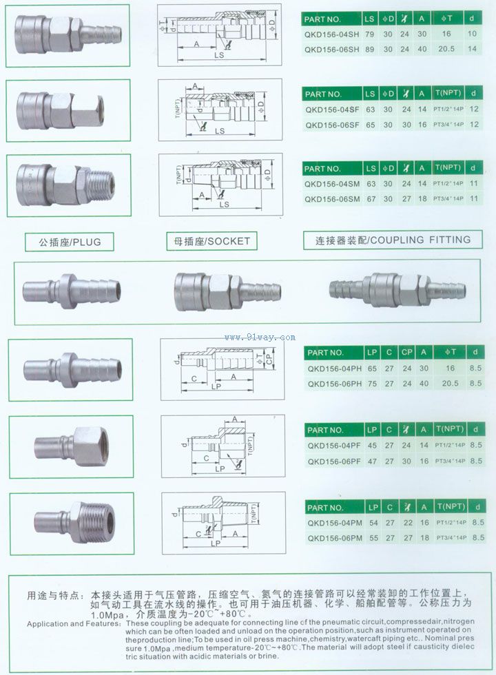 QKD156單開閉氣動快速接頭(中體)(碳鋼)