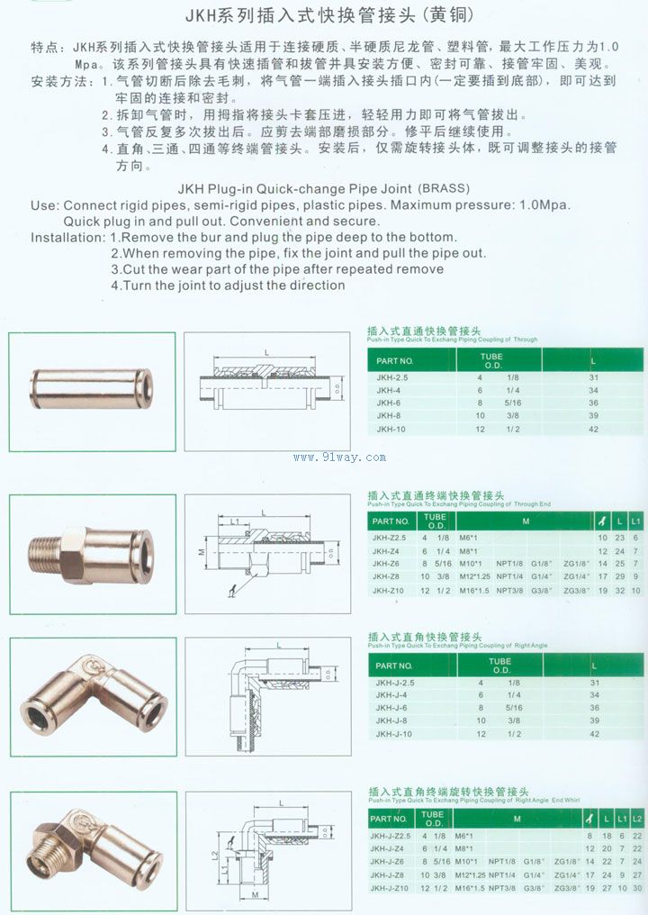 JKH系列插入式快換管接頭(黃銅)
