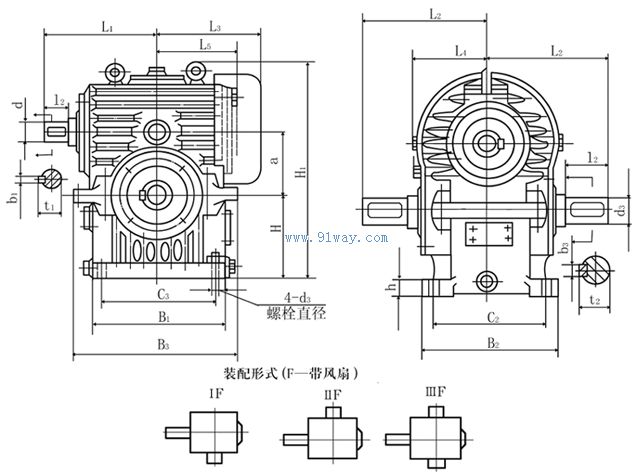 主要包括:CWU 蝸桿在下型 CWS 蝸桿在側(cè)型 CWO蝸桿在上型