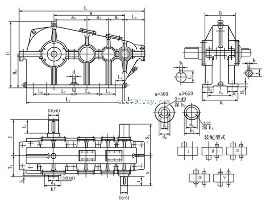 ZS、ZSH、ZSSH型減速器的標記包括:型號、中心距、傳動比、裝配型式等。