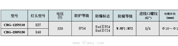 CBG-□N□防爆燈(混光)(ⅡB、ⅡC)技術參數