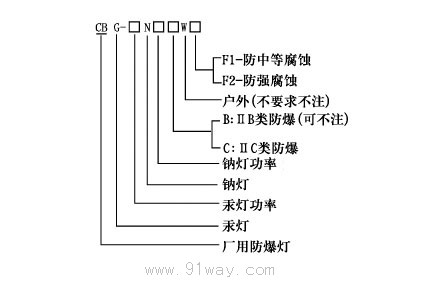 CBG-□N□防爆燈(混光)(ⅡB、ⅡC)型號意義: