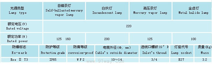BAD52-e系列增安型防爆防腐燈(e)技術(shù)參數(shù)