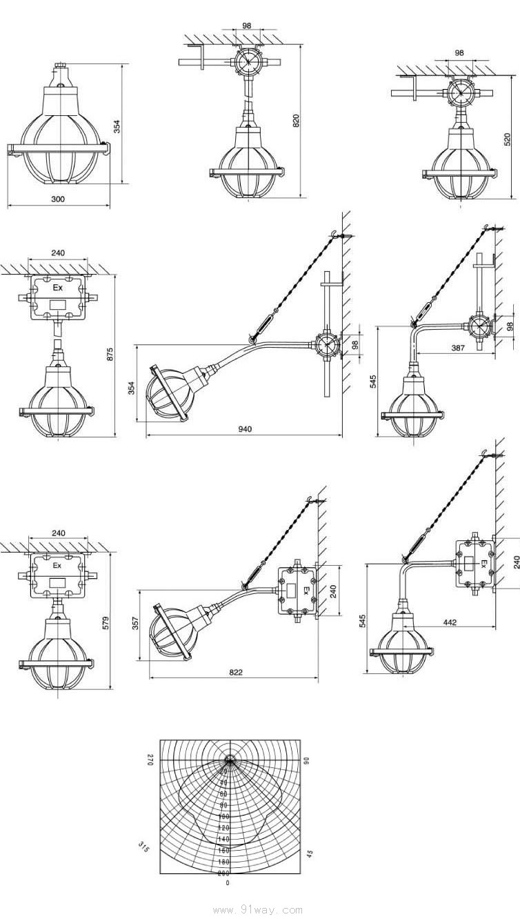 BAD52-e系列增安型防爆防腐燈(e)安裝示意圖