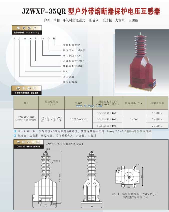 JZWXF-35QR型戶外帶熔斷器保護電壓互感器