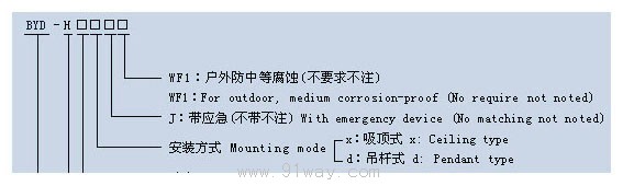 BYD-H系列防爆環形熒光燈(ⅡB、ⅡC)型號意義: