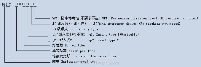 BYS-Y系列防爆潔凈熒光燈(ⅡB、ⅡC)型號意義: