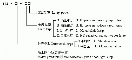 FAT-□系列防水防塵防腐泛光燈型號(hào)意義: