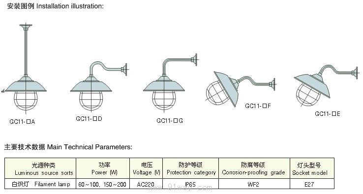 | 產(chǎn)品名稱: | GC9,GC11廣照型防水防塵燈 | |||||