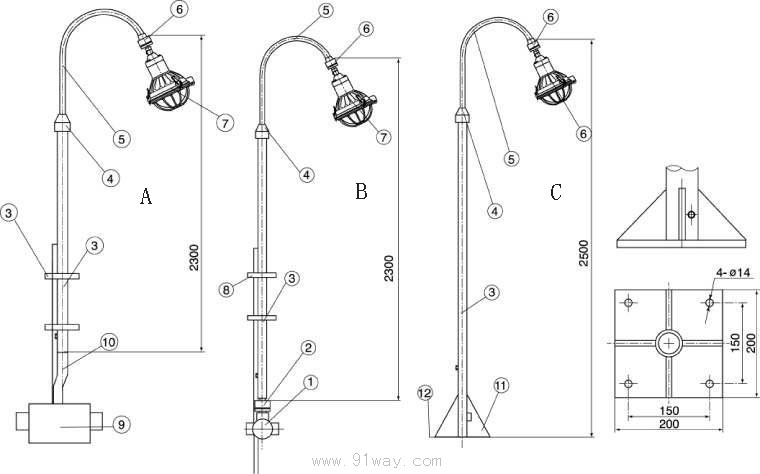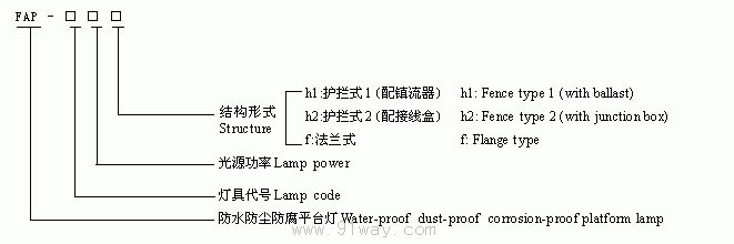 適用范圍: FAP-M系列防水防塵防腐平臺燈適用范圍同相應的安裝燈具。 產品特點: 1、燈桿采用優質鋼管表面噴塑。 2、彎桿和直桿采用插接式連接,便于安裝和調整燈具的轉向。 FAP-M系列防水防塵防腐平臺燈型號意義: FAP-M系列防水防塵防腐平臺燈主要技術參數: