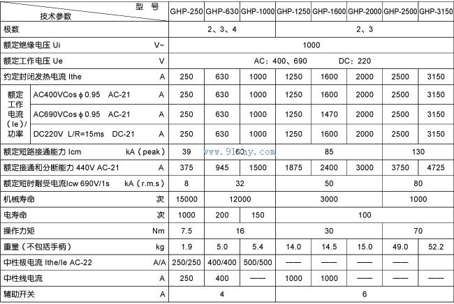 適用范圍 GHP系列隔離開關主要用于有高短路電流的配電電路和電動機電路中,作為手動不頻繁操作的電源開關、隔離開關和應急開關。 符合標準 GB14048.3 EC60947-3 技術參數