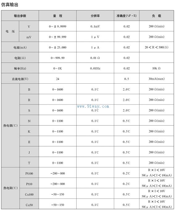 有V,mV,mA,Ω和熱電偶(TC),熱電阻(RTD)信號的輸出與測量.24VDC配電輸出為變送器提供回路電源,并可同時測量變送器所輸出的mA值.