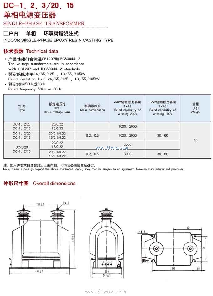 DC-2/20KV型單相電源變壓器