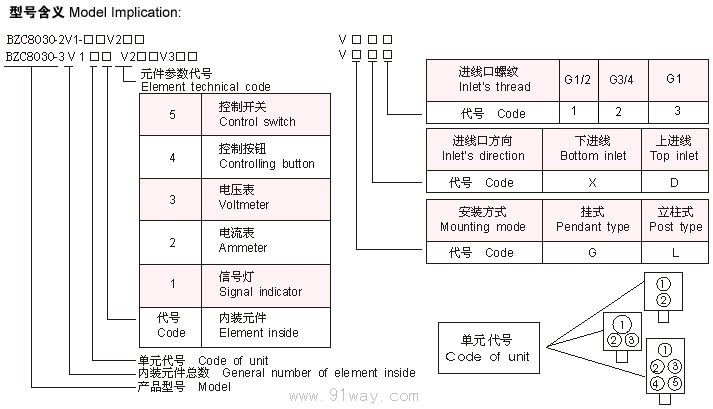 BZC8030-系列防爆防腐操作柱(ⅡB,ⅡC)型號意義: