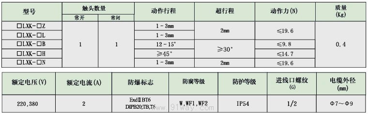 LXK-系列防爆行程開關(guān)(ⅡB)技術(shù)參數(shù)