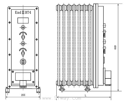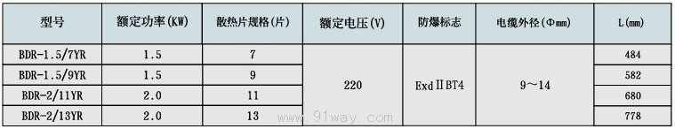 BDR-□YR系列防爆電加熱器(油汀)(ⅡB)適用范圍: 1.1區、2區危險氣體場所; 2.ⅡA、ⅡB類T1~T4組爆炸性氣體或蒸氣環境; 產品特點: 1.產品為油熱式,用于冬委取暖或增加低溫環境溫度的設備; 2.溫度根據需要可調節; 3.產品為移動式設備; 4.電纜布線。 BDR-□YR系列防爆電加熱器(油汀)(ⅡB)型號意義: 主要技術參數: