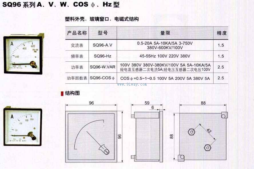 SQ96-V系列型面板交流電壓表