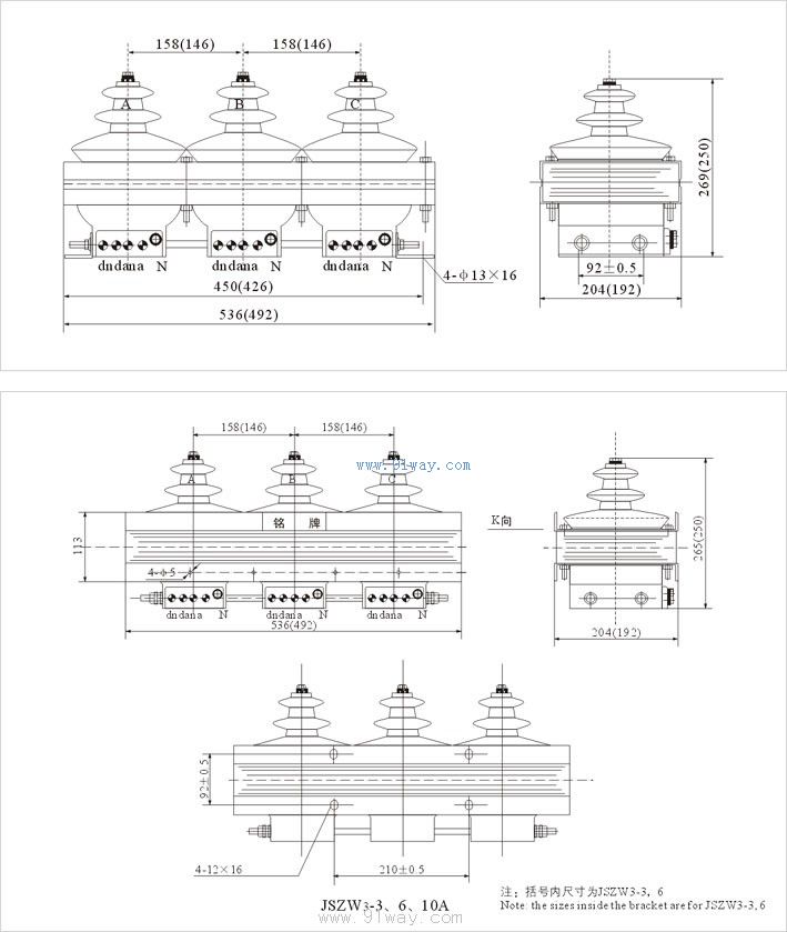 | 產品名稱: | JSZW3-6A,B系列半封閉三相電壓互感器 | |||||