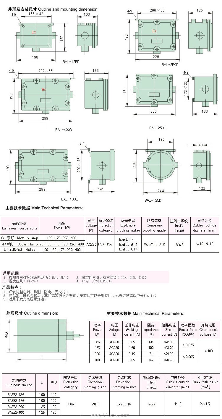 BAL-□系列防爆鎮(zhèn)流器(ⅡB、ⅡC)適用范圍: