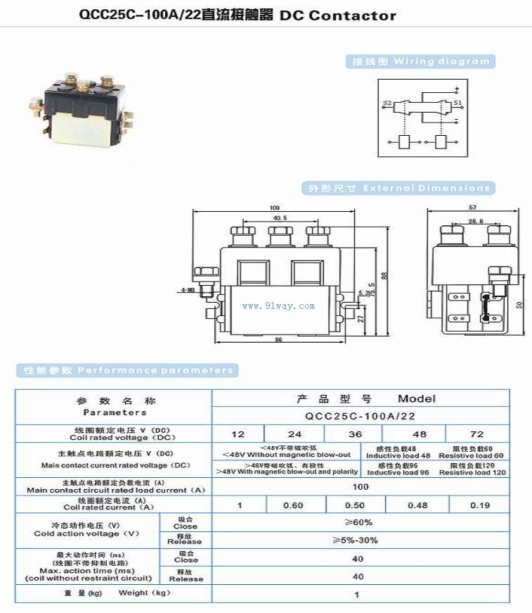 QCC25C-100A/22型直流接觸器
