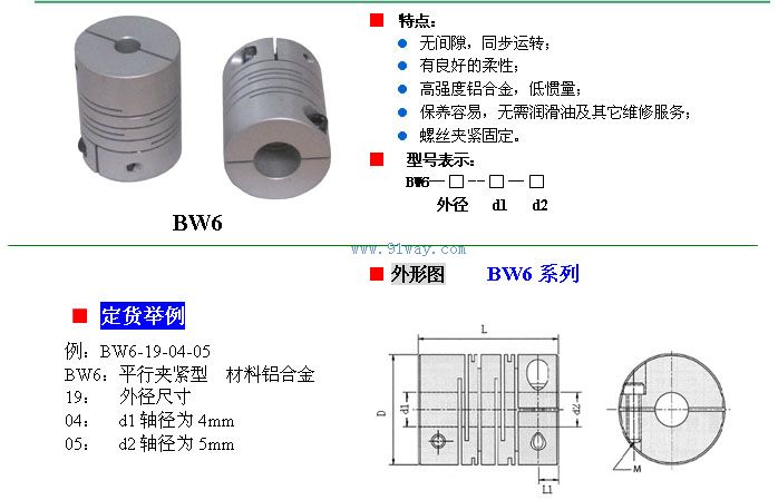 首頁 您的位置:您的位置:首頁機械傳動聯軸器編碼器聯軸器 → BW6平行線夾緊聯軸器