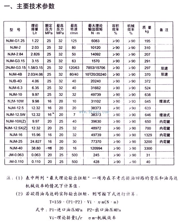 一、技術參數 二、外形尺寸圖NJM型內曲線徑向柱塞液壓馬達