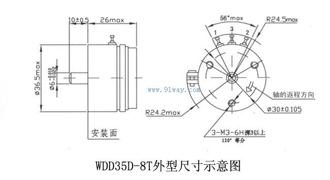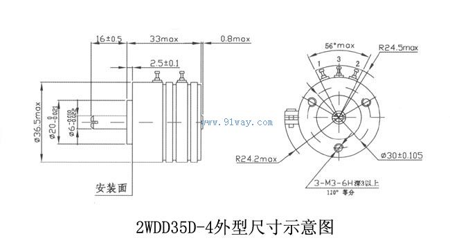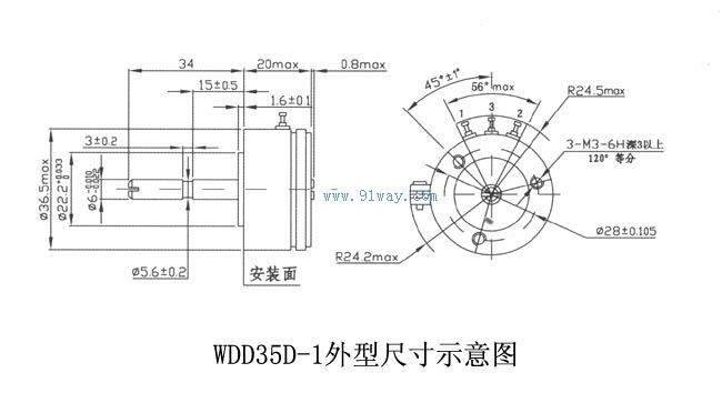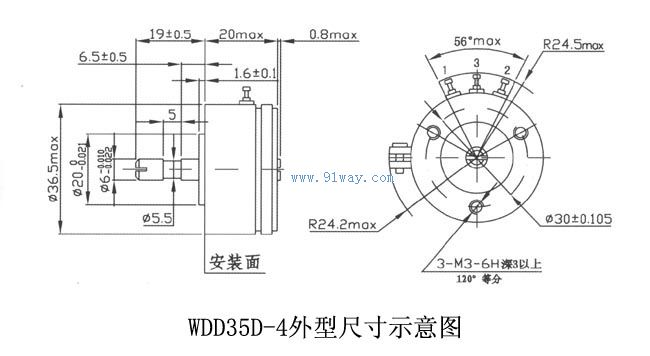 WDD35系列精密導電塑料電位器結構尺寸: