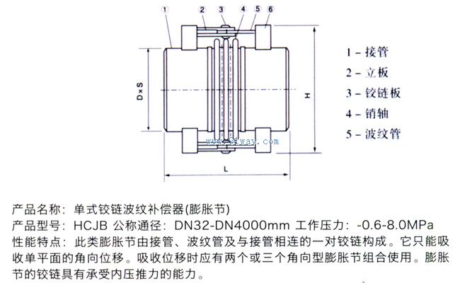 HCJB單式鉸鏈波紋補償器(膨脹節)產品詳細說明: